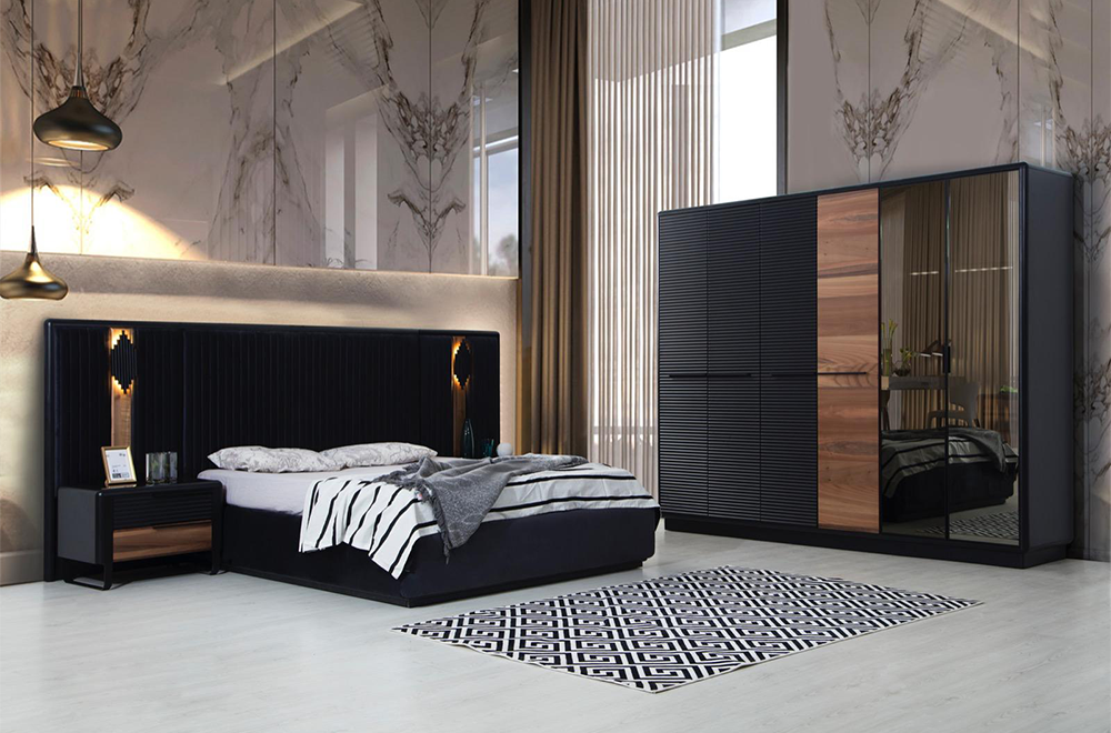 Takım İçeriği | Karyola-başlık, gardırop, şifonyer, iki adet komodin |