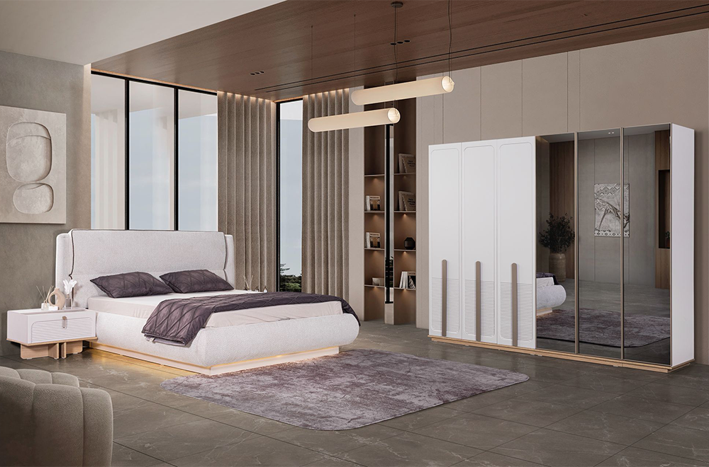 Takım İçeriği | Karyola-başlık, gardırop, şifonyer, iki adet komodin |
