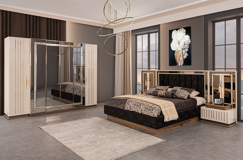 Takım İçeriği | Karyola-başlık, gardırop, şifonyer, iki adet komodin |