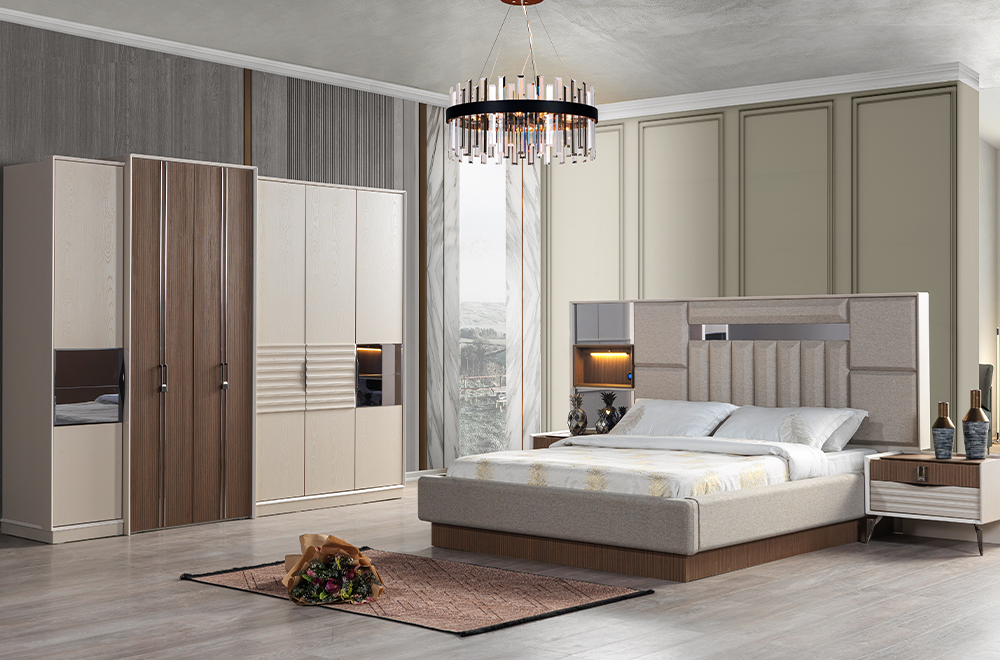 Takım İçeriği | Karyola-başlık, gardırop, şifonyer, iki adet komodin |