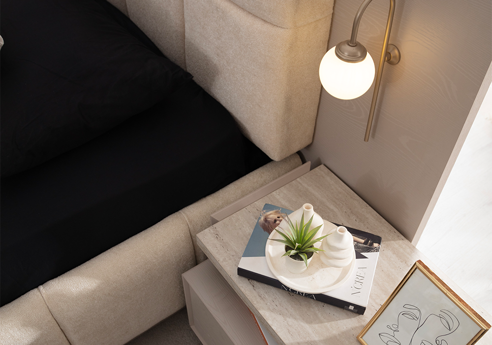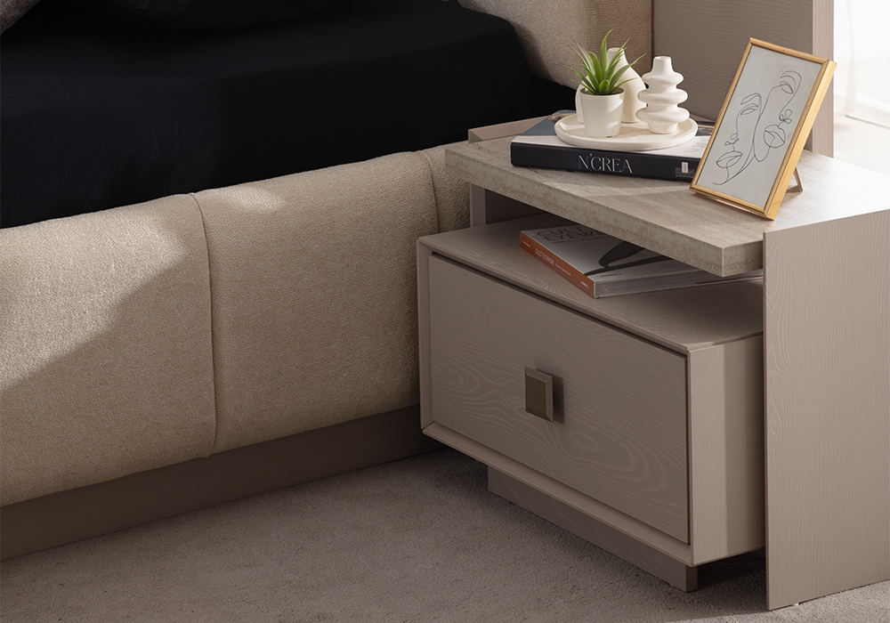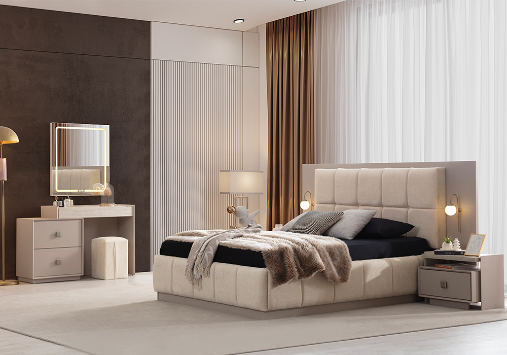Takım İçeriği | Karyola-başlık, gardırop, şifonyer, iki adet komodin |