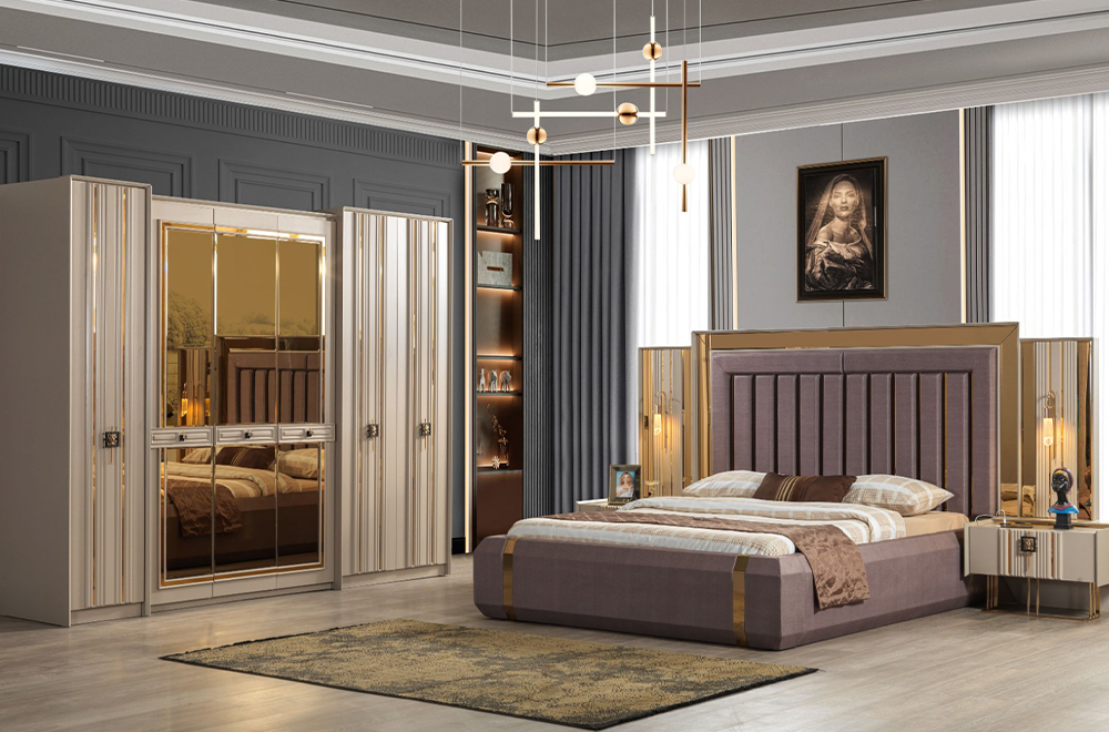 Takım İçeriği | Karyola-başlık, gardırop, şifonyer, iki adet komodin |