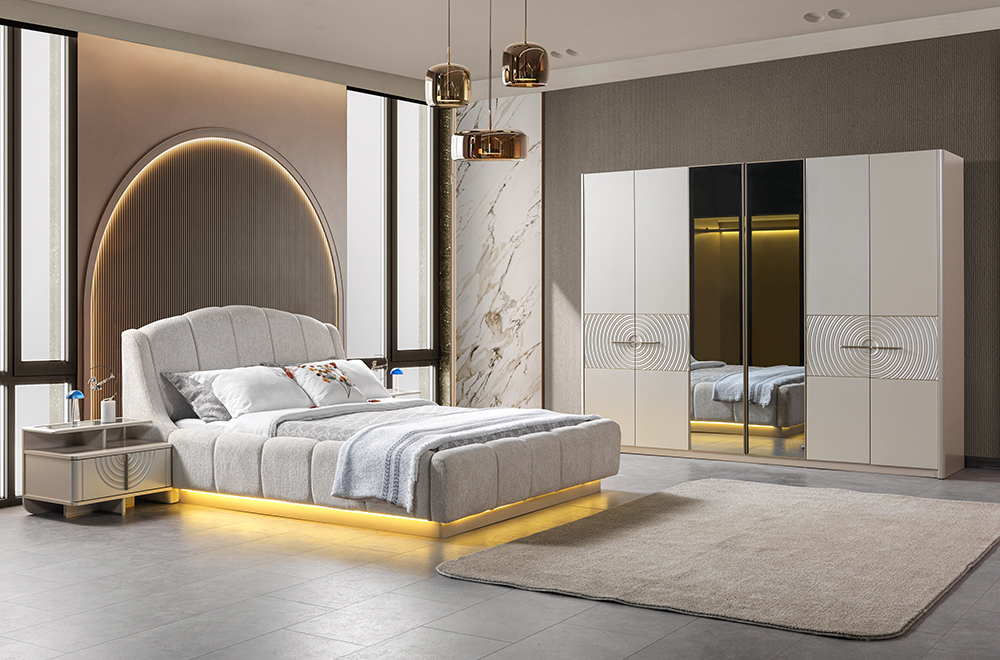 Takım İçeriği | Karyola-başlık, gardırop, şifonyer, iki adet komodin |