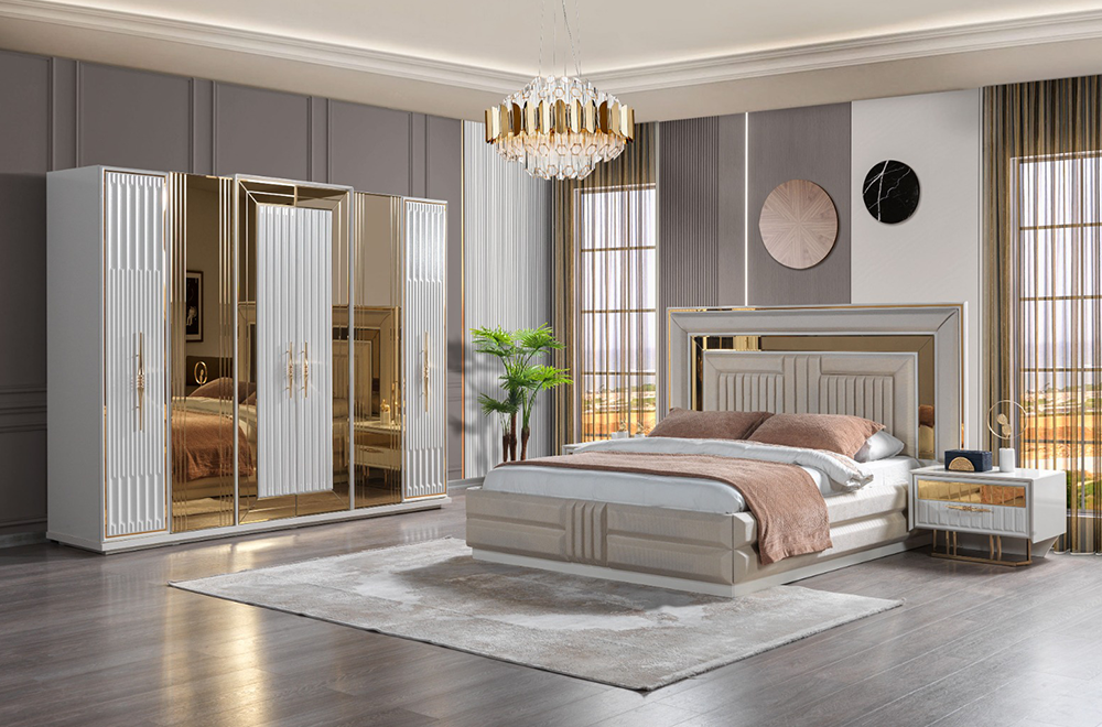 Takım İçeriği | Karyola-başlık, gardırop, şifonyer, iki adet komodin |
